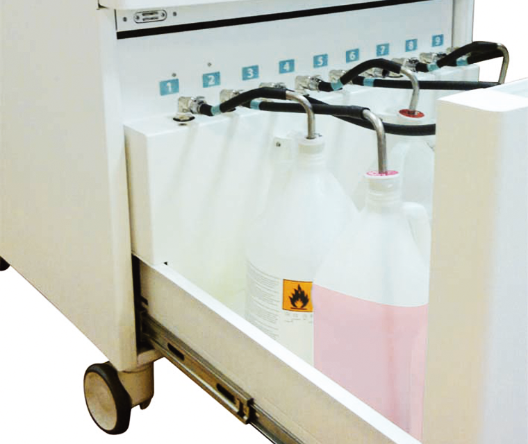 Los pasos de deshidratación / limpieza ultrarrápidos se llevan a cabo mediante la tecnología de calentamiento por microondas para un cambio más rápido. Sus parámetros de procesamiento se pueden configurar para ajustarse a los requisitos específicos de su flujo de trabajo.
