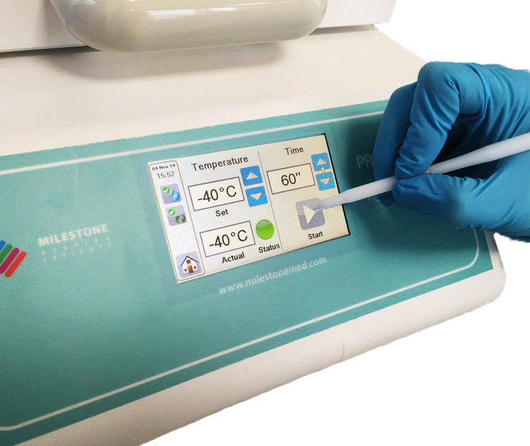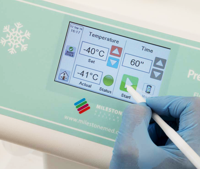 PrestoCHILL reduce el tiempo de congelación a 60 segundos y elimina los artefactos de congelación mediante congelación ultrarrápida, evitando la formación de cristales de hielo. Los tejidos grasos cortados, como los senos o los ganglios linfáticos, se pueden congelar sin dificultad y sin la distorsión de sus delicadas estructuras.